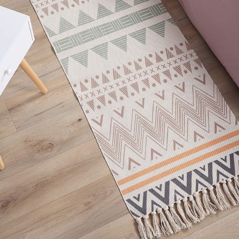 Dieser exquisite Läufer wurde entworfen, um Ihren Eingangsbereich oder Flur nicht nur zu verschönern, sondern auch zu schützen. Mit seinem ansprechenden Boho-Chic-Design in sanften Naturtönen wie Creme, Beige und einem Hauch von gedämpftem Salbeigrün fügt er sich nahtlos in verschiedene Einrichtungsstile ein – von modern minimalistisch bis rustikal gemütlich. Die faszinierenden geometrischen Muster, darunter Zickzacklinien, Dreiecke und Streifen, verleihen jedem Raum eine besondere Note und laden zum Verweilen ein. Genießen Sie den Komfort unter den Füßen und die optische Wärme, die dieser Teppich ausstrahlt.